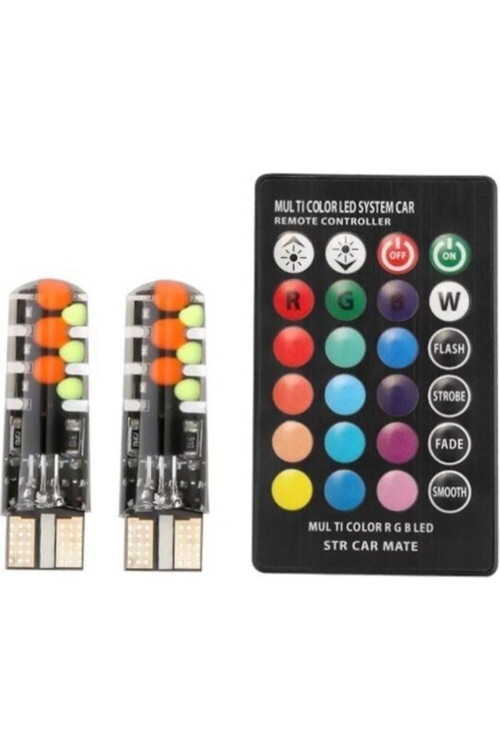 LED Sayısı: 5050 6 SMD LEDSoket Tipi: T10Voltaj: 12 VGüç: 2W/ampülRenk: RGBIşık Açısı: 180 dereceBoyut: 34mm x 9mmPaket içeriği: 2 Adet silikon T10 Ampül + Uzaktan Kumanda (pil dahil)