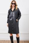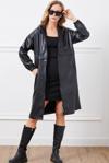 Tomiross Sahra Kapüşonlu Fermuarlı Cepli Sıcak Astarlı Su Geçirmez Suni Deri Mevsimlik Trençkot Sahra-1610
