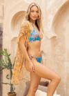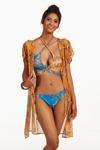 Pratikoba markasının şıklığı ve rahatlığı bir araya getiren şal desenli önü açık kısa pareosu, plaj modasının vazgeçilmez parçalarından biri olarak öne çıkıyor.