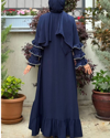 Rahatlığı ve şıklığı bir arada sunan şal ve ferace ikili takım, hem günlük kullanımda hem de özel günlerde zarif bir kombin oluşturur. Pamuklu aerobin kumaşın nefes alabilen yapısı sayesinde gün boyu konfor sağlar.