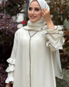 Rahatlığı ve şıklığı bir arada sunan şal ve ferace ikili takım, hem günlük kullanımda hem de özel günlerde zarif bir kombin oluşturur. Pamuklu aerobin kumaşın nefes alabilen yapısı sayesinde gün boyu konfor sağlar.
