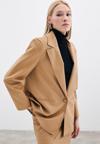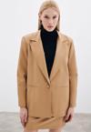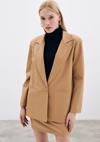 Düz ceket yaka, ön tek düğmeli, süs cep, iç astarlı, vatkalı, salaş deri ceket.