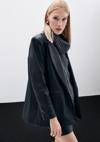 Düz ceket yaka, ön tek düğmeli, süs cep, iç astarlı, vatkalı, salaş deri ceket.