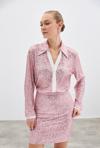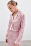 Ön yarım düğmeli v yaka, kalça altı boy, salaş payet gömlek.