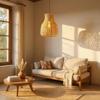 Bu avize, minimal bir tasarımın ötesine geçerek mekâna zarif bir dokunuş ekler. Rafyanın doğal dokusu, hem şıklığı hem de doğallığı yansıtarak, özellikle doğal ve organik dekorasyonları tercih edenler için mükemmel bir tercih sunar. Salaşhane modelinin ferah yapısı ve eşsiz tığ işçiliği, her alanda etkileyici bir atmosfer yaratır.