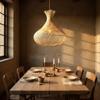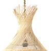 Bambu Salaşhane Yan Modeli, bambunun esnek yapısı sayesinde benzersiz bir görsellik sunar. Her bir bambu parçası, el işçiliğiyle birleştirilerek zamansız bir şıklık oluşturur. Avizenin yan modeli, sade ama etkileyici bir tasarım sunar, özellikle geniş alanlarda mekânın doğal ve ferah görünmesine olanak tanır.