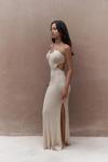 Dokulu örgü tasarım ve yan yırtmaçlı. Astarsız.