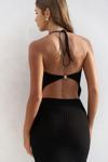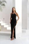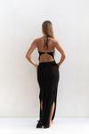 Yarasa kol, boyundan bağlamalı uzun triko elbise. Arkası metal kopçalı.