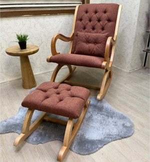 Sandalye 14602 Sallanan Model Bambu Kayın CEVİZ Lake Örgü kumaş minder El yapım