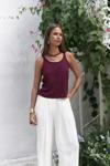 Bisiklet yaka, ince askılı, nefes alabilen kumaş basic t-shirt.