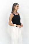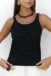 Bisiklet yaka, ince askılı, nefes alabilen kumaş basic t-shirt.