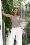 Bisiklet yaka, ince askılı, nefes alabilen kumaş basic t-shirt.