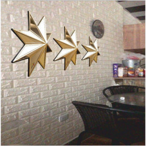 M3Decorium Altın Yaldız Çerçeveli Aynalı 8 Kollu Yıldız Duvar Vitrin Resepsiyon Aynası Süsü Objesi