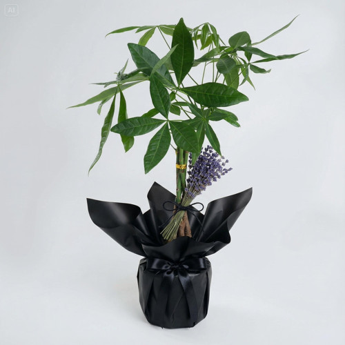 Paranın ve bereketin simgesi olan Pachira, aynı zamanda ""para bitkisi"" olarak da biliniyor. Bu bitki, zarif yaprakları ve şansı simgeleyen özelliğiyle yaşam alanlarınıza pozitif enerji katarken, turuncu mavi buket kağıdı ve turuncu kurdele ile aranjmana modern bir hava katıyor. Canlı renkler ve doğal dokular, bu aranjmanı hem şık bir dekorasyon unsuru hem de anlamlı bir hediye haline getiriyor. Siz de dilerseniz kendi yaşam alanlarınıza bereket ve doğallık getirmek için, dilerseniz sevdiklerinize hediye etmek için bu özel aranjmanı tercih edebilirsiniz. Siparişiniz sonrasında çıkacak “Not oluşturma” sayfasında birkaç cümlelik not oluşturarak hediyenizi daha anlamlı bir hale getirmeyi unutmayın.