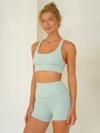 Bisiklet yaka crop tişört. Dayanıklı, nefes alabilir kumaş. Lazer kesim.