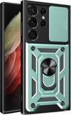 Butik Samsung Galaxy S23 Ultra Kılıf Pars Lens Yüzüklü Silikon - Yeşil-(5796)