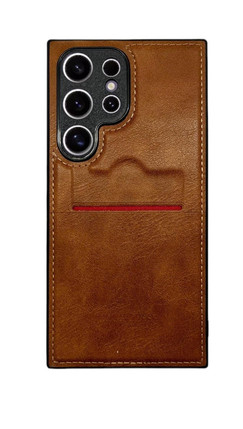 Samsung Galaxy S24 Ultra için Deri Telefon Kılıfı, Kartlıklı, Kahverengi