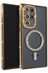 Butik Samsung Galaxy S25 Ultra Kılıf Joke Simli Magneticsafe Kılıf - Gold-(5796)