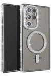 Samsung Galaxy S25 Ultra Kılıf Joke Simli Magneticsafe Kılıf - Gümüş-(5796)