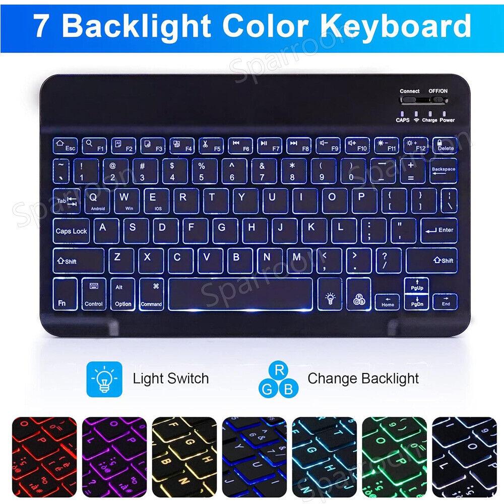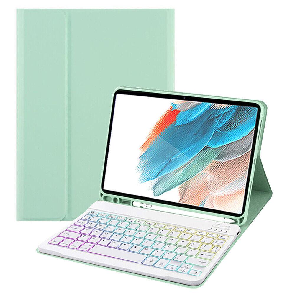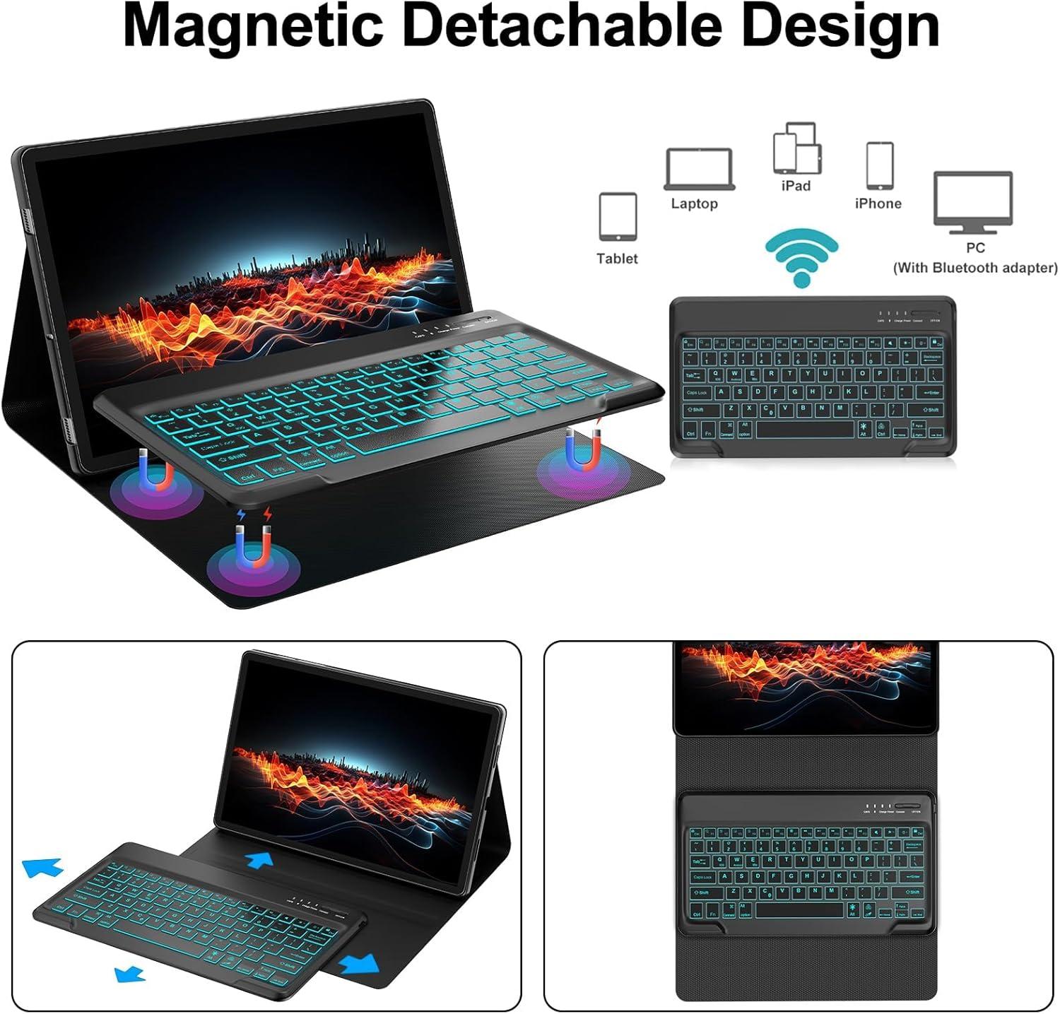 Five-E Samsung Galaxy Tab S7 FE RGB Led Işıklı Türkçe Karakterli Bluetooth Özellikli Kalemlikli Klavyeli Kılıf SM - T730
