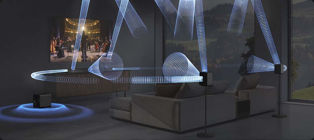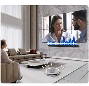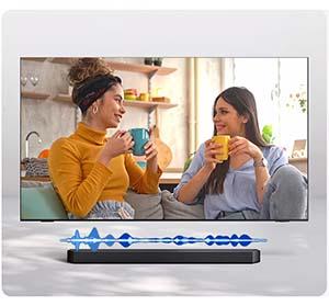 Yapay zeka teknolojisi Q-Symphony sayesinde, en ideal kanaldan oynatma yapmak için insan seslerini arka plan seslerinden ayırır. Kusursuz uyum sağlayan TV hoparlörleriniz ve Soundbar’ınız ile çok daha net konuşma sesleri ve daha sürükleyici 3D çevresel sesin keyfini çıkarabilirsiniz.