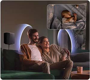İki adet yukarıya doğru ses veren kablosuz hoparlör, sinema kalitesinde bir ses deneyimi sunar. Tavandan yansıyıp sizi sarmalayan bir ses elde etmek için bu hoparlörleri öne veya arkaya bakacak şekilde yerleştirin.