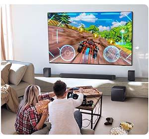 Capcanlı 3D ses sayesinde oyunun heyecanını derinden hissedin. Soundbar’ınız, Samsung TV’nize bağlı bir konsol algıladığında sesi otomatik olarak ayarlar. Ayrıca Samsung TV Gaming Hub üzerinden oyun oynuyorsanız sesi oyun türüne göre optimize eder.