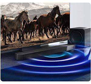 Soundbar’ınız istikrarlı şekilde güçlü bas ses vermesi için tasarlandı. Derin baslı hoparlör sessize alındığında bile ana Soundbar, içeriklerinizi zengin bas keyfini çıkararak izlemenizi sağlar.