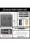 Sanathobi Kara Kalem Çizim Seti, Eskiz Kalem Seti, Dereceli Kalem Set, Kömür Kalem, Kalemlikli-25 Parça