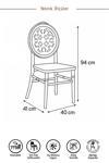 Sandalyenin yüksekliği, 89 cm genişlik 41 cm, derinlik ise 40 cm'dir.