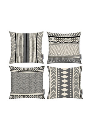 İskandinav, Cozy, Bohem, Modern Çift Tarafı Baskılı 4'lü 43x43 Kırlent Kılıfı Krem, Siyah. Gri