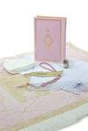 İhvan Sandıklı Çeyizlik Seccade Seti Damat Gelin Bohçasına Uygun Hediyelik Şal Kuranı Kerim Seti Pembe
