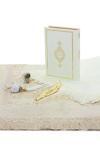İhvan Sandıklı Çiçek Detaylı Çeyizlik Seccade Seti Gelin Bohçasına Uygun Hediyelik Şal Kuranı Kerim Seti Beyaz