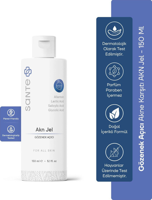 Sante Plus AKN Temizleme Jeli 150 ml *lçeriği ile ciltteki yağ oluşumunu azaltır ve cildi rahatlatır. *Yağlı karma ve normal cilt tiplerine uygundur. *Cilt kusurlarını, sebum fazlalığını ve ölü deriyi uzaklaştırmak için granüllü jel formunda tasarlanmıştır. *Cildi anında derinlemesine arındırır. *Gün boyu cilt temiz ve mat kalır. Cytabiol bardane extres Salcylic acid Zinka PCA Vitamin A lO U mİ