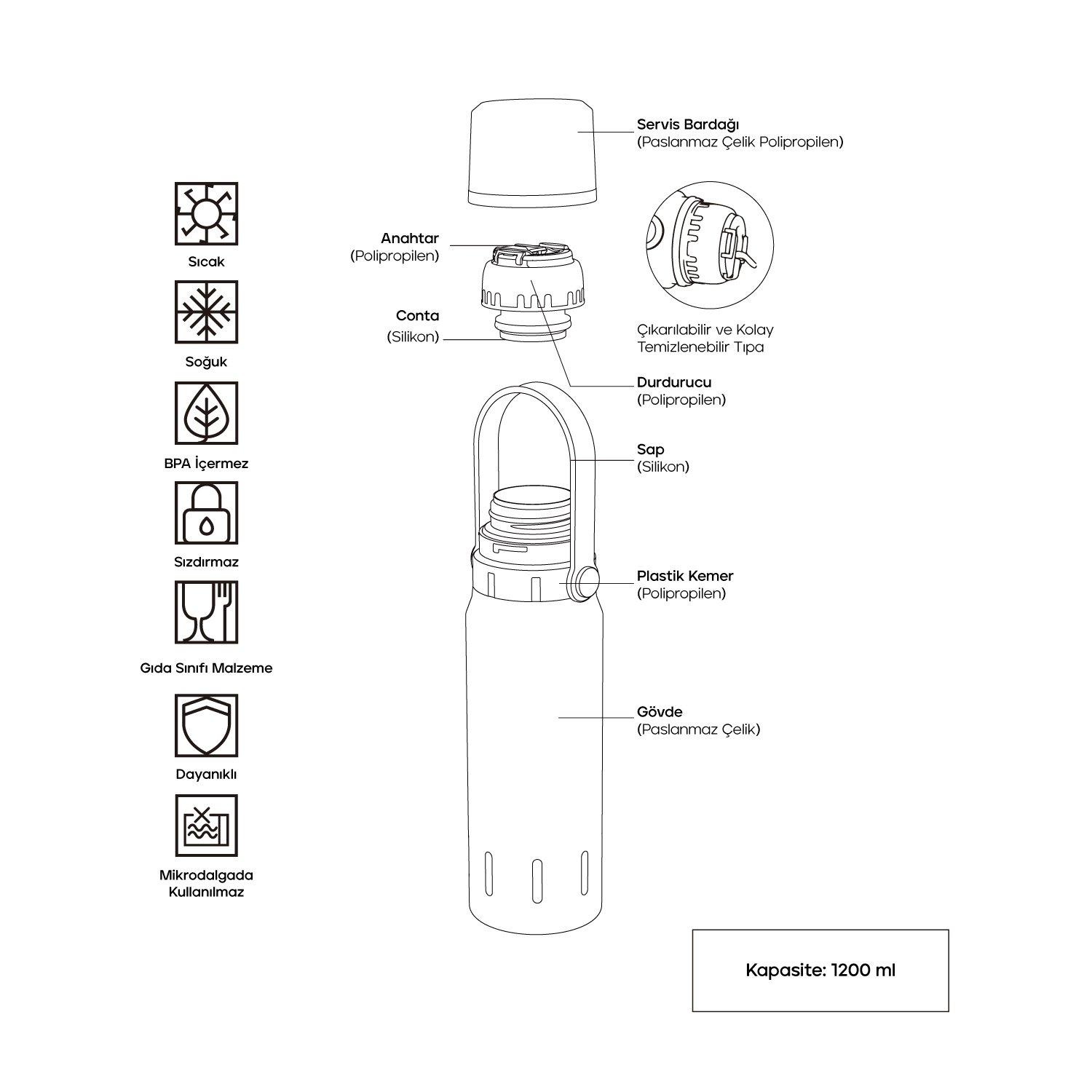 12 saat sıcak, 12 saat soğuk tutma özelliğine sahiptir.