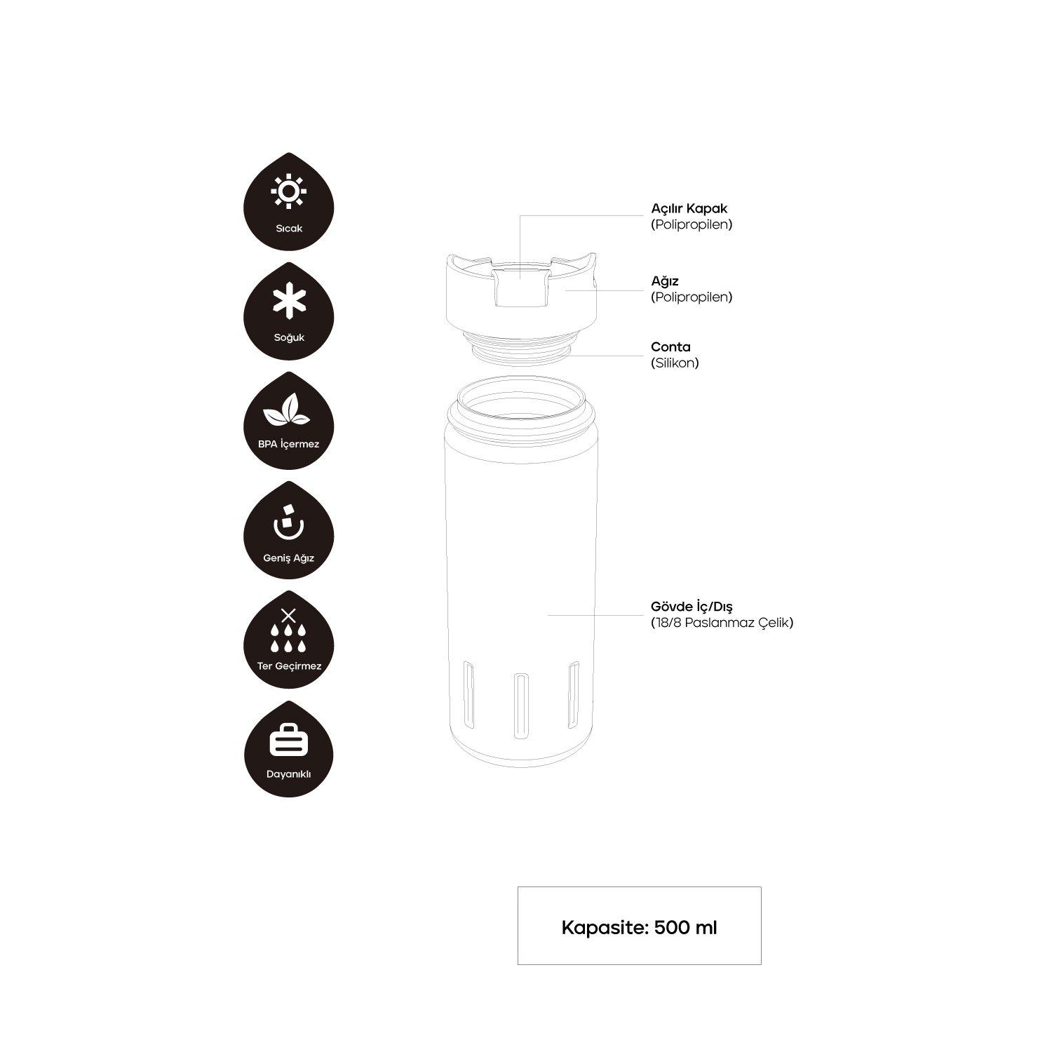 12 saat sıcak, 24 saat soğuk tutma özelliğine sahiptir.