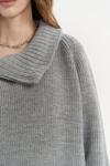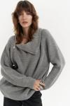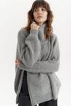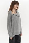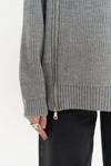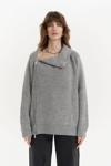 Yüksek ve geniş balıkçı yaka, rahat formda ve reglon kollu, yandan açılabilir çift kürsör (taratlı) fermuar detaylı kazak.