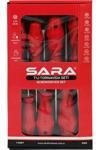 Sara S491 7’li Tornavida Seti SET İÇERİĞİ 4X100 - YILDIZ5X125 - YILDIZ6X125 - YILDIZ3X80 - DÜZ4X100 - DÜZ5X125 - DÜZ6X150 - DÜZÜRÜN ÖZELLİKLERİ C45 Çelik Manyetik Kafa Ergonomik Sap