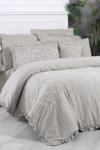 Nevresim : 200 cm. x 220 cm. (1 Adet)Yatak Çarşafı : 260 cm. x 280 cm. (1 Adet)Yastık Kılıfı : 50 cm. x 70 cm. (4 Adet)Sanforized Kumaş (Çekmezlik Garantisi)Çift Taraflı Kullanılabilir TasarımMalzeme : %100 Pamuk Saten - 300 TC Yıkama Talimatları : *Çamaşır makinesinde yıkanabilir, 40 derecede yıkanması tavsiye edilir.*Çamaşır suyu kullanılmamalıdır.*Kurutma makinesinde kullanıma uygundur.*Kuru temizleme yapılmamalıdır.*Ilık ütü ile ütüleyiniz.