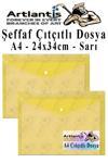 Artlantis Sarı A4 Çıtçıtlı Dosya Şeffaf Renkli Zarf Dosya 2 Adet Çıt Çıtlı Dosya Su Geçirmez 100 Yaprak Kapasite