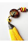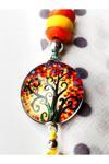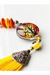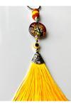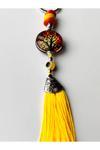Sarı Cam Hayat Ağacı Desenli Sarı Püsküllü Anahtarlık – Zarafet ve Doğanın Simgesi
