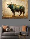 Sarı Duvar Önü Güçlü Boğa Dekoratif Kanvas - Mdf Ahşap Tablo