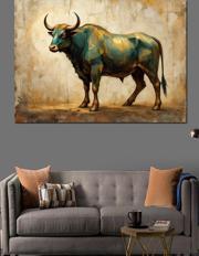 Tablomega Sarı Duvar Önü Güçlü Boğa Dekoratif Kanvas - Mdf Ahşap Tablo
