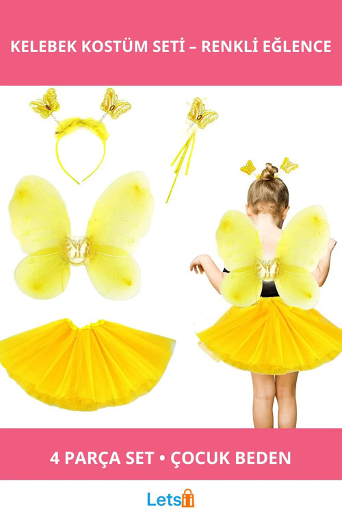 - Çocukların hayallerini süsleyen harika bir sarı kelebek kostümü!