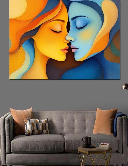 Tablomega Sarı Mavi Soyut Yüzler Dekoratif Kanvas - Mdf Ahşap Tablo