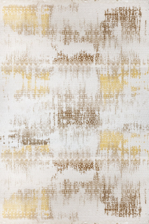 Halinet Sarı Modern Etnik Desenli Pamuk Makinada Yıkanabilir Hav Toz Vermez Leke Tutmayan Kaymaz Taban Dijital Makine Baskı Salon Yolluk Mutfak Halı