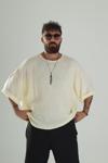 Sarı Müslin Kumaş Oversize Fakir Kol T-Shirt