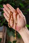 Zarif Detaylar: Sarı Püsküllü Krem Renk Sıkma Kehribar Tesbih