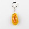 Sarı Şeffaf reçine malzemeden içine preslenerek yerleştirilmiş gerçek Yengeç fosilli anahtarlık