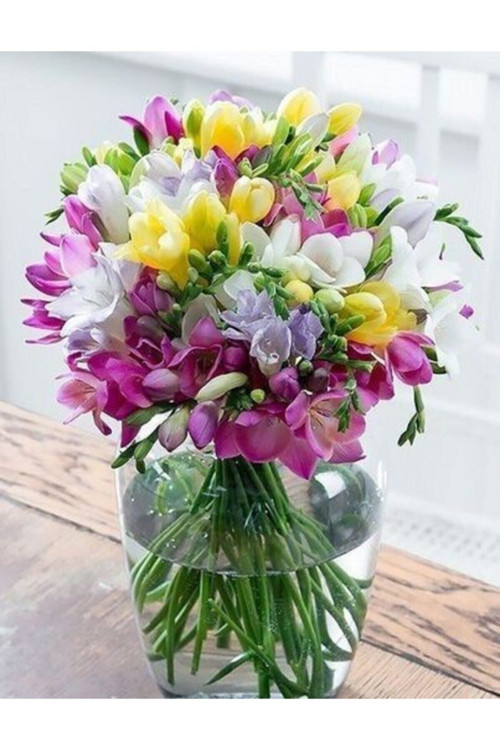 ) bahar aylarında evlerimizi süsleyen frezyaların çeşitli renklerinin yanında güzel bir kokusu vardır